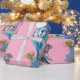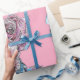 Blue Budgie Roses art on Pink flowers Watercolor Wrapping Paper. Designed by me from one of my original watercolor paintings. A stylish gift sure to put a smile on anyone's face.