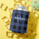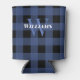 Rustic blue buffalo check can cooler with your initial in pale blue and last name in white.