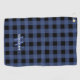 Blue buffalo check printed golf towel with your initial in pale blue and last name in white.