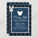 Blue Buffalo Plaid Merry Little Bear Baby Shower Invitation