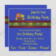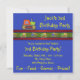 Bright blue dump trucks and bulldozers boy's 3rd birthday party invitation.
