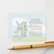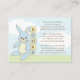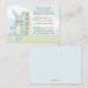 A cute little blue bunny leans against a stack of blue, green and yellow blocks that spell "books" on a soft blue background in this fun book request wishing-well card. A charming poem requests that guests bring a book for the baby-to-be to start the new mum off with a library of beloved children's books. Just insert this sweet card inside the baby shower envelope, and your guests will know what's needed to start baby on the path towards reading.