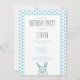 Cute blue boy's 1st birthday party invitation with blue bunny rabbit design let's your guests know that some bunny is turning one! All the first birthday party details can be easily customised on the back of baby boy 1st birthday invitation.