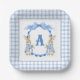 Blue Bunny Rabbit Gingham Monogram Crest Paper Plate