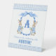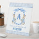Blue Bunny Rabbit Gingham Monogram Crest Pedestal Sign