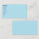 A pretty blue business card to pass out. Dont't forget to fill it out!