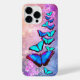 Blue Butterflies on Pink and lavander flowers iPhone Case