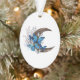 Blue butterflies on wooden crescent ornament