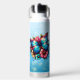 Blue Butterfly and Pink Flowers Personalised Water Bottle