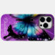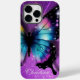 Dark glittery look butterfly on a background of purple. This case can be personalised.