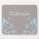 Sweet and dainty Butterfly Floral Mousepad with a muted dusty gray background and light blue butterflies and floral vine embellishments. This elegant floral mouse mat is a lovely choice for adding some girly flair to your workspace. Easy to customize, simply add the personalized text of your choosing in the text fields provided. Click on the "Customize It" button to find additional personalization options.