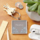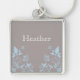 Sweet and dainty Butterfly Floral Premium Keychain with a muted dusty grey background and light blue butterflies and floral vine embellishments. This elegant floral key fob is a lovely choice for keeping your keys handy with girly flair. Easy to customise, simply add the personalised text of your choosing in the text fields provided. Click on the "Customise It" button to find additional personalisation options.