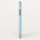 Blue butterfly and gold metallic look confetti on light turquoise blue iPhone X Case. A blue butterfly is believed to be a wishgranter. Text can be personalised.