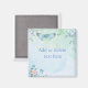 A single blue butterfly on a pale pasta blue and green watercolor background with a floral fringe with a single pink flower; with or without text of your choice.