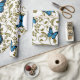 Blue Butterfly with Golden Leaves Wrapping Paper