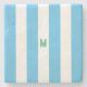 The perfect personalised cabana stripe coasters for your summer drinks... sky blue cabana stripes with green monogram. Personalise with your own initial. Matching accessories available in our Minimal Monogram Cabana Stripe Collection.