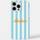 Create your own custom monogram phone case featuring blue and white cabana stripes pattern your personalised name in retro script typography.