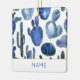 Watercolor Cactus Pattern in Dark Blue, Gold trim on white background with custom NAME in blue. Easy to personalise text, text colour, font. Great for ANY desert occasion, cactus lover, party favour, wedding Party, bachelorette weekend souvenir. Modern, Colourful, Fun. Mix and match entire Cactus Collection by TMCdesigns.