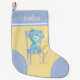 Blue Calico Bear Smiling on Chair Small Christmas Stocking