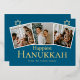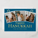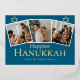 Blue Calligraphy Happiest Hanukkah family 3 photo Foil Holiday Card