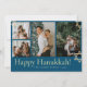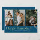 Blue Calligraphy Happiest Hanukkah family 4 photo Holiday Card
