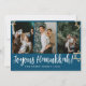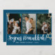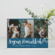 Blue Calligraphy Happiest Hanukkah family 4 photo Holiday Card