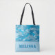 This stylish personalised bag features a blue camouflage (camo) pattern above a matching section at the bottom with a template area for you to personalise it with a name or other custom text.