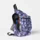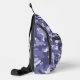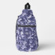 This bag features a delightful camo style pattern in tones of blue, grey blue, and off white. Your triple letter monogram is in white within a matching blue circle banner on the pocket.