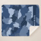 Perfect for anyone that loves camouflage this blue camo pattern Sherpa blanket will keep you cosy and warm on chilly nights. Across the bottom on a navy blue stripe is your name in light blue stencil typography for you to personalise. Designed by artist ©Susan Coffey.