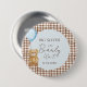 Make the big sister-to-be shine with this We Can Barely Wait Baby Shower Pin. The design highlights a teddy bear holding a blue balloon framed by a light blue arch and brown gingham plaid background. Customisable text lets you add the special date, making it a keepsake she’ll love. Pair with invitations, game cards, and party favours from the We Can Barely Wait Boy Baby Shower Collection by Porch And Gable Design for a coordinated celebration.