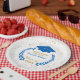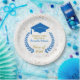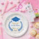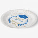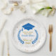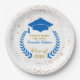 Paper plates for that special high school or college graduation party with personalized text. Features image of a blue grad cap and laurel wreath accented with faux gold confetti. See matching napkins and other color groups also available in this same design