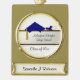Graduation ornament gift for that special high school or college grad with custom text. Features a blue cap and tied ribbon diploma.image on a banner shaped medallion. Your choice of gold-colour or silver colours with matching ribbon.