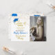Graduation party invitation in blue and gold school colours. Created with blue cap, blue and white balloons and faux gold glitter, with space for your own photo. All text front and back already formatted and ready for your own text details. Other colours available in this same design. Photo credit: Pixabay image by Lorri Lang
