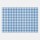 Wrap gifts for the graduate in different but matching wrapping papers, all with blue as their base color. One with graduation caps and diplomas. One with Congratulations, class of the Year, and one with a printed gingham pattern.