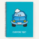 Smiling blue cartoon car with soap bubbles. Custom text.
