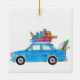 Blue Car with Christmas Gifts Watercolor Ceramic Ornament
