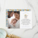 Share heartfelt gratitude with this charming blue vintage carriage photo thank-you card. Featuring a floral border, classic pram illustration with a soft blue bow, and space for your favorite newborn photo, this design creates a warm and personal message for guests. All text is fully customizable, allowing you to add your baby’s name, message, and family signature.