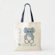 Sweet hospital overnight bag for mum to be, with graphics of a cute blue cartoon baby elephant. A blue heart in the bottom left corner, with blue text, on either side reading It's A Boy! Great reusable tote bag that makes a great gift bag for baby showers.