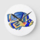 Blue Cartoon Butterfly Fish Round Clock