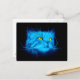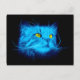 A fractalized blue cat face with stunning yellow eyes against a black background.