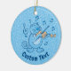 Handrawn blue cat cartoon playing the violin. Custom text on both sides.