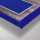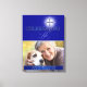 The honoree's photo is really set off by the rich blue and silver of this Celebrating a Life memorial canvas. A Christian cross replaces the letter T in the Celebrating text and a matching bar overlaying the photo holds name and dates.