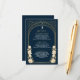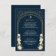 Capture timeless elegance with this Celestial Art Nouveau-inspired details card! Featuring a radiant golden arch, delicate white flowers, and shimmering stars against a deep blue background, this design sets the tone for a sophisticated celebration. Perfect for weddings, galas, and milestone events! Please note that the gold on this product is NOT real foil; it is printed flat.