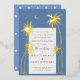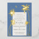 This boho wedding invitation would be perfect for anybody hosting a tropical destination wedding or anybody who wants a twilight summer vibe for their invitation. The design features shiny gold foil palm trees with a moon and stars on a soft blue background with and the reverse of the invitation has a boho star pattern to match.