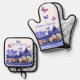 BLUE CHARIOT OF SWANS ,BUTTERFLIES AND CUPCAKES OVEN MITT & POT HOLDER SET