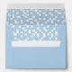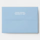 Geometric blue check pattern invitation envelope with custom return address on the back flap.