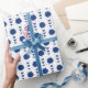 Blue Cheerleader Pom Poms & Hearts Pattern Wrapping Paper