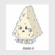 Funny sticker of a block of mouldy sad blue cheese. Funny food pun sticker for cheese lovers and foodies