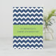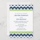 Custom 30th Birthday party invitations in elegant and modern dark navy blue, bright lime green, and white fun and casual chevron zigzags stripes pattern. Add your name and party details for a unique and stylish 30th birthday party invitation.