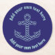 Blue Chevron Anchor Nautical Custom Text Round Paper Coaster